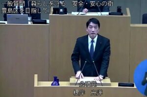 公明党の根岸光洋です。公明党豊島区議団を代表して「暮らしを守る 安全・安心の街 豊島区を目指して」と題して1.新年度予算について2.認知症施策について3.安心の街づくりについて4.教育について5.スポーツ推進について6.その他として子どもの福祉施策について一般質問を行います。